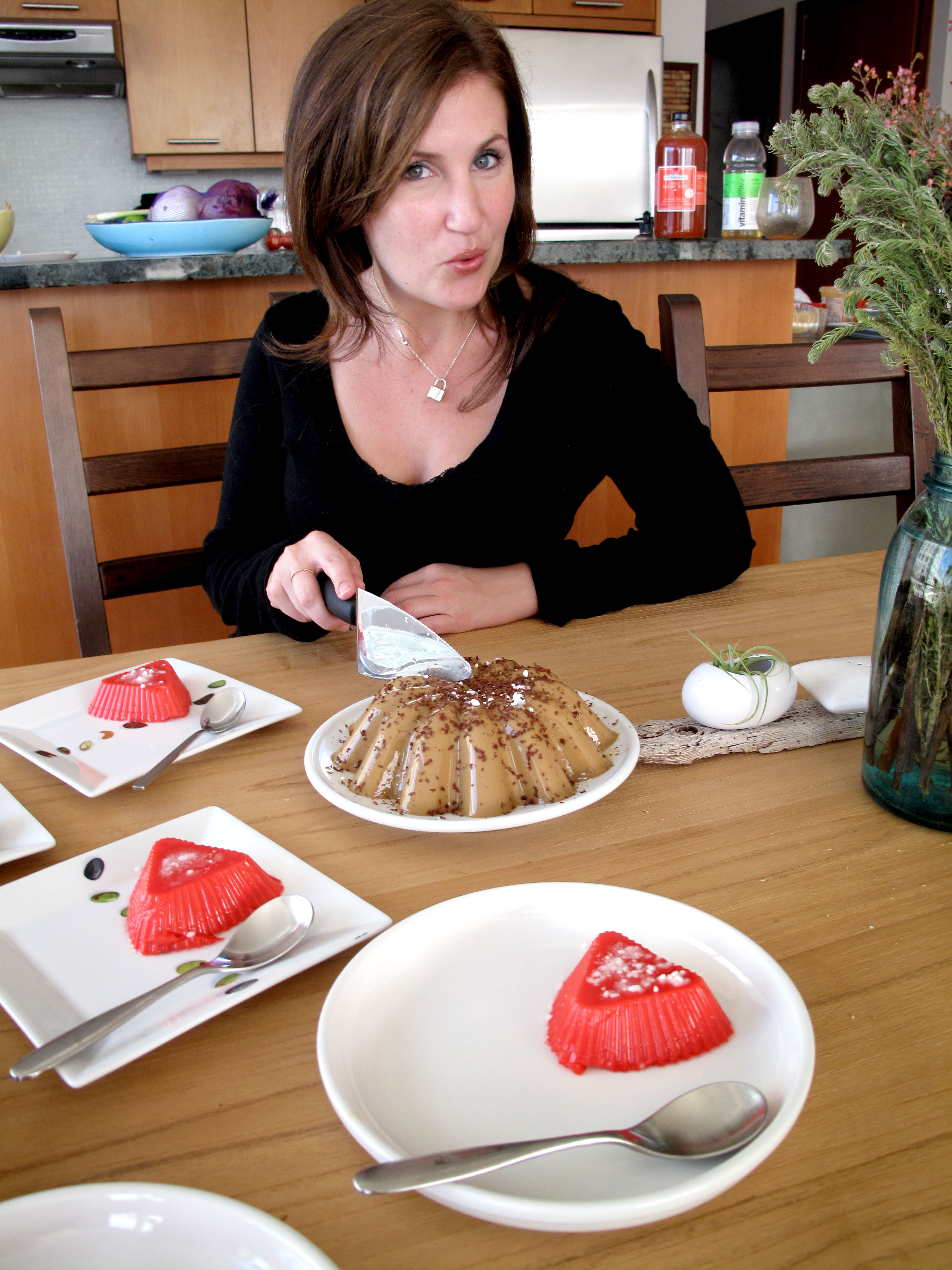 Rebecca C hosted a brunch in which I served little cherry cream jellos singles made with cherry jello and sweetened condensed milk, topped with powered sugar. I also served a large version of the Coffee Kahlua jello that Rebecca K couldn’t wait to cut and serve.