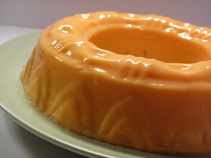 This smooth and creamy jello mold is made of apricot gelatin and sweetened condensed milk with chopped pears and peaches.