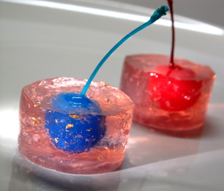 So how did you make one of the cherries blue, or did it come that way? Love the cherry/goldschlager combination, by the way.