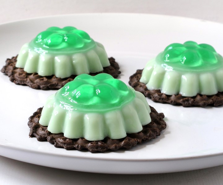 It wouldn’t be St. Patrick’s Day without some green jello shots! For this year’s drunken festivities, I decided to take it a step further with these little Peppermint Patty treats. Made with sweetened condensed milk and sitting atop a chocolate wafer, Peppermint Schnapps give these mini jellos their flavor and a little kick. Check out the recipe to make your own and don’t drink too much green beer this weekend!