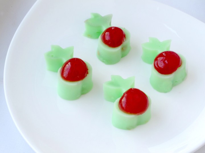 Valentine’s Day is next Friday and its the kickoff to President’s Day weekend. What better way to celebrate your someone special or your favorite founding father than with some super cute jello shots! Pistachio pudding and a generous dose of vodka comprise the stem of the cherry shaped jello shot which is topped off with a red maraschino cherry. The resulting flavor is sweet and creamy, with a little boozy boost.