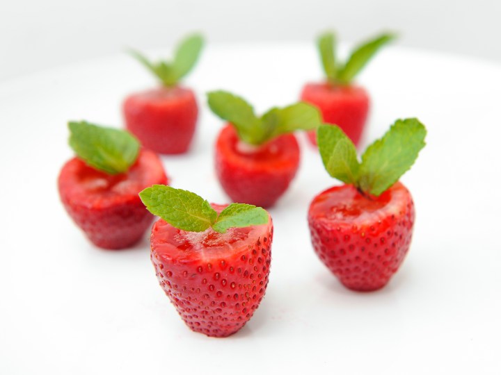 Who says jello shots can’t be romantic? Little strawberry cups hold gelatinous champagne topped with a little sprig of mint. This bite-size take on the classic aphrodisiac is sure to spark that Valentine’s Day romance… or, at the very least, get your date a little buzzed. This recipe was created for Food Network so click through to create your own Valentine’s Day treat.
