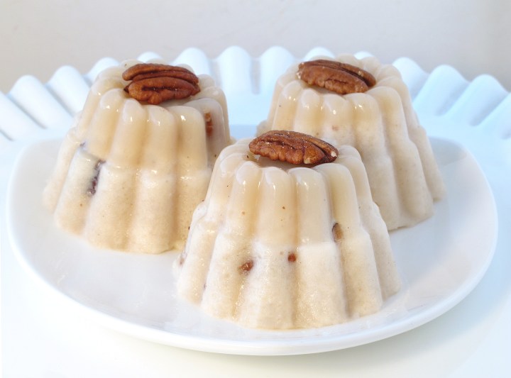 Forgo the pecan pie this Thanksgiving and try a jello instead! The delicate flavors of warm butter, cool ice cream and crunchy pecans are not overshadowed by the bite of bourbon. It’s like have pie with ice cream all rolled into a tidy little mold, with a little side of booze. The perfect end to your Thanksgiving feast!