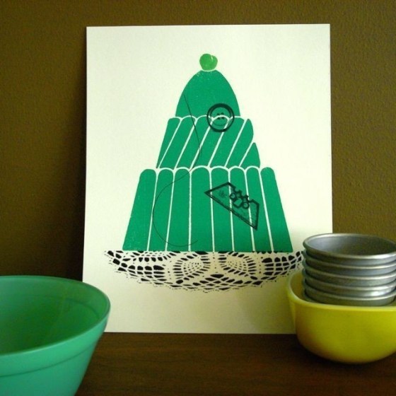 I am a huge fan of Cuddly Rigor Mortis‘ paintings of anthropomorphic food and animals (sometimes cavorting together) and jump at the opportunity to feature her jello mold related work. This painting showcases the special bond between a green jello mold and his cherry-on-top… that bond being a dollop of whipped cream. Cute! “Jiggle” is from her upcoming solo show Happy Food at Gallery 1988 in LA that opens […]