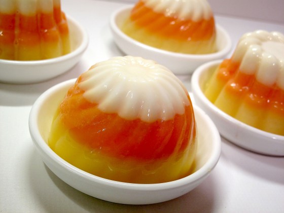 For the last in a series of Halloween jellos made for Kitchen Daily, I made these tropical fruit flavored versions of everyone’s favorite Halloween treat, Candy Corns. I used sweetened condensed milk, with orange and pineapple flavored gelatin. A second, larger version of this jello mold was created for this weekend’s festivities, only with the […]