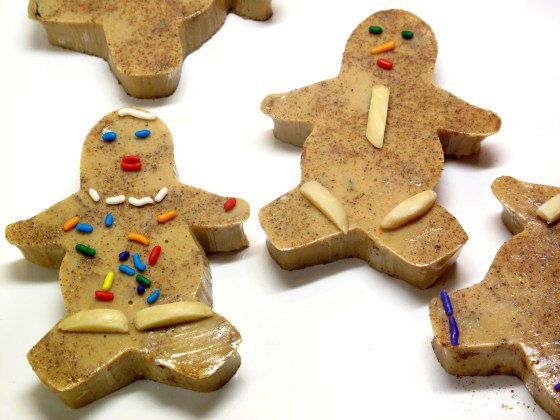 For Christmas with the family this year, I made these little gingerbread flavored jello jigglers. Flavored with molasses, cinnamon, and nutmeg with a creamy base of sweetened condensed milk, these little gingerjello men and women are fun for all to decorate and eat. This recipe appears in my new book. Merry Christmas Everyone!